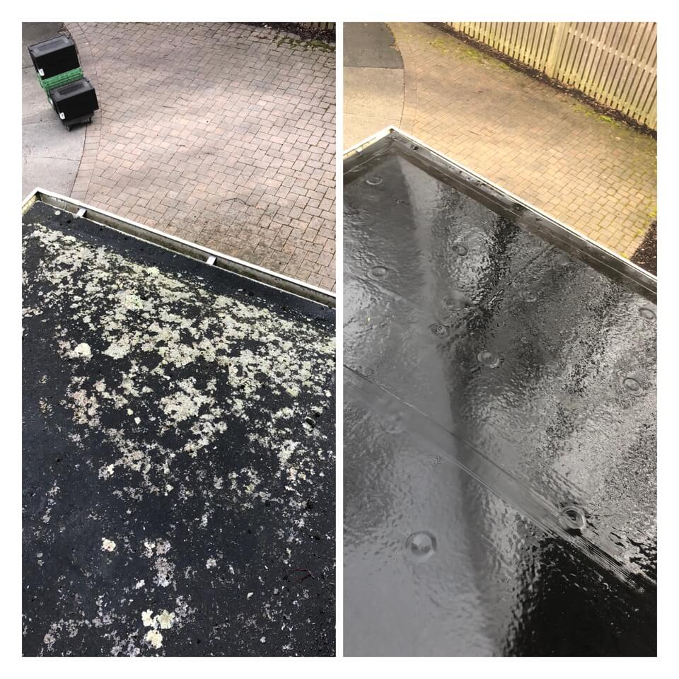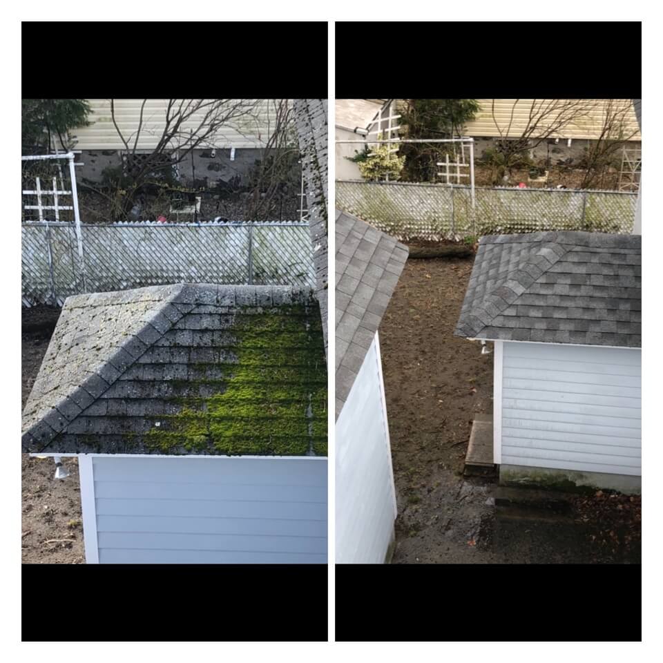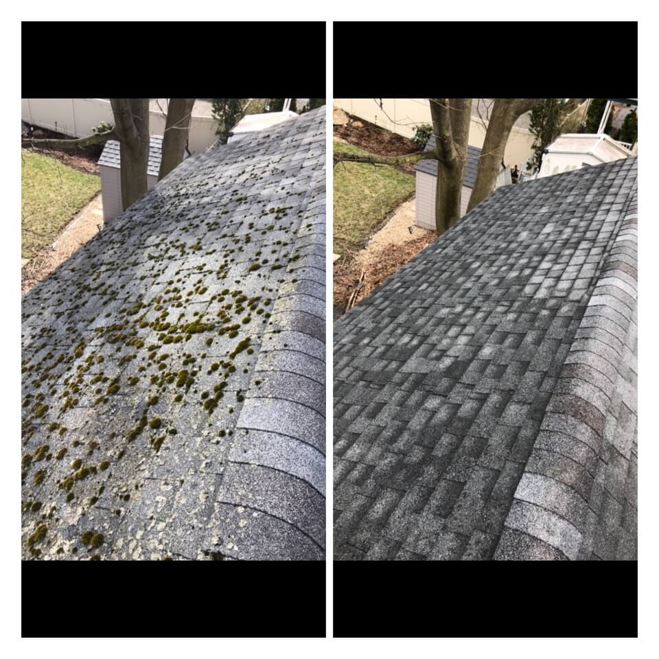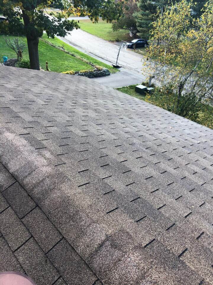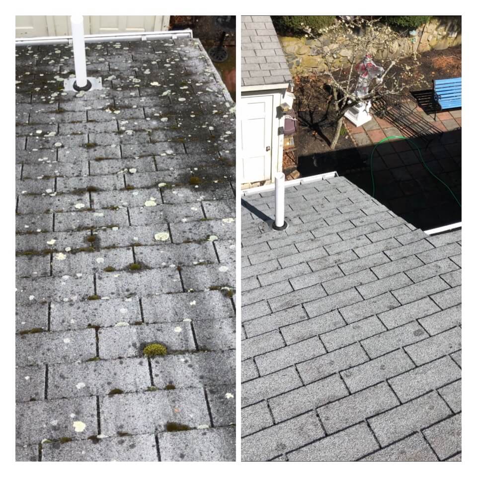 HiCleaners is the most experienced company in Foxborough, MA that deals with roof washing and roof soft washing. All of our employees are trained to recognize precise solution mixing ratios to provide you with the safest and most effective soft washing service. Roofs are a commonly neglected part of a house due to the fact that most people don’t have ladders to access it, so it is very easy to just leave it alone and forget about problems that may start to arise. Just like many home owners, discoloration and small bits of moss on a roof can be overlooked because of the misconception that it is just aesthetic. However, it isn’t just aesthetic, the moss slowly lifts the granules off the shingles which in turn shorten the life of the shingle. The moss also spreads, just like any bacteria if it is left alone for too long, it can quickly become a problem that spirals out of control. Call HiCleaners for a free quote, we only use the most advanced eco-friendly solutions and equipment to make sure the job is done right, for the safety of the employees, your plants, grass, pets, and children.